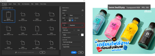 ถ้าใช้โปรมแกรม Adobe Photoshop หรือ รูปภาพ ควรตั้งค่าความละเอียดของไฟล์งานไว้ที่ 300 ppi ขึ้นไป