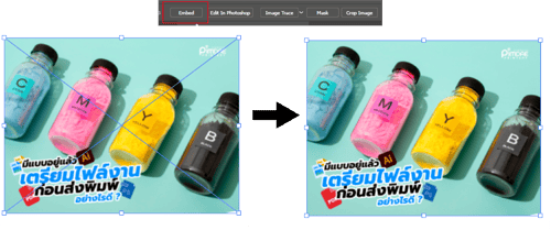 การฝังรูปภาพหรือใส่ลิงค์รูปภาพลงในไฟล์งาน ทำให้รูปภาพนั้นกลายเป็นส่วนหนึ่งของไฟล์งาน เมื่อโรงพิมพ์เปิดไฟล์งานรูปภาพก็ปรากฏทุกเครื่องคอมพิวเตอร์