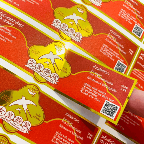 บริการออกแบบ–พิมพ์ฉลากสินค้าและสื่อสิ่งพิมพ์ครบวงจร วัสดุหลากหลาย หมึกคุณภาพสูง: สติ๊กเกอร์ขาวเงา/ด้าน/มุก, ใส, 3M, ฝ้า, ฟอยล์เงิน/ทอง, ฟอยล์รุ้ง, โฮโลแกรม, กระดาษคราฟท์ | พร้อมพิมพ์ป้ายแท็ก, นามบัตร, การ์ดขอบคุณ, โปสการ์ด